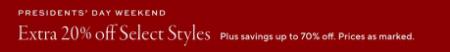 Presidents' Day Weekend Extra 20% Off